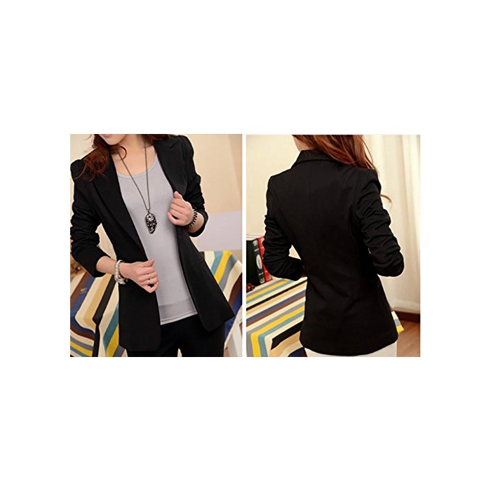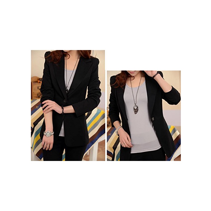 Iselect i-select 롱 길이 테일러드 재킷 레이디스 블랙 아이보리 핑크 긴 소매 (XL,블랙)