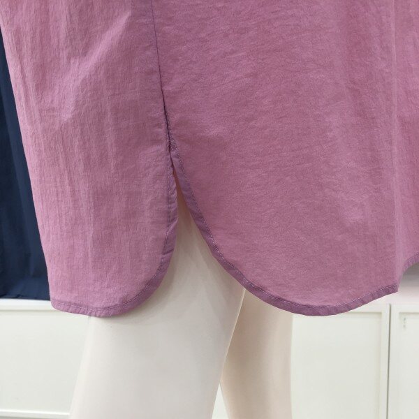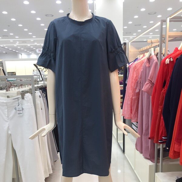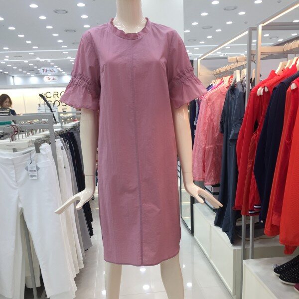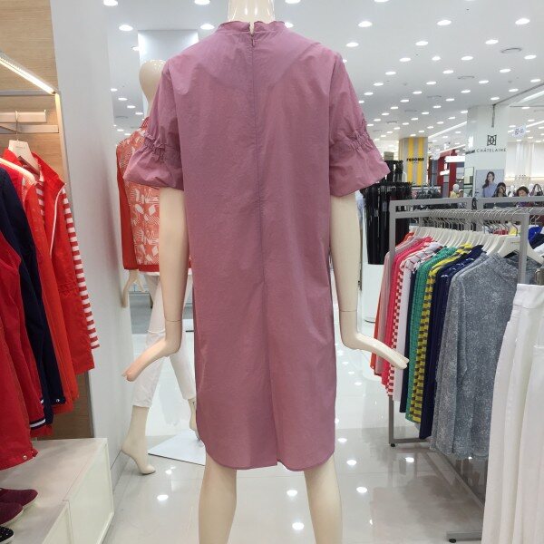 얇고 가벼운 코튼 소재의 원피스. 여유있는 튜닉 원피스 스타일에 넥크와 소매에 자수디테일로 포인트를 준 스타일.