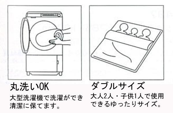 | 素材・材質 | 表地:ポリエステル100% 裏地:ポリエステル100%(マイクロファイバー) 中綿:ポリエステル100%(ウルトラファインファイバー)2000g |