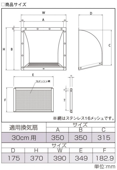 素材・材質フード本体:ステンレスSUS430