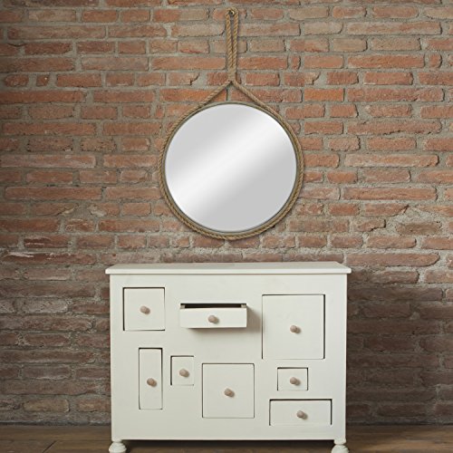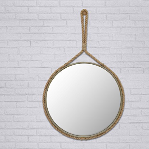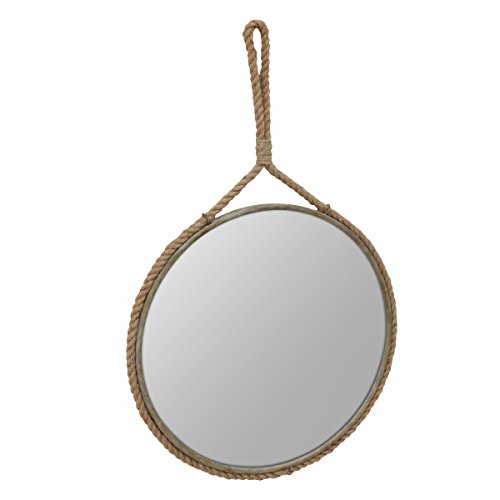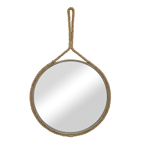 Stonebriar Round Decorative Mirror with Metal Frame & Rope Hanging Loop for Wall, Nautical or Farmhouse Home Décor