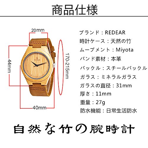 -. Title : REDEAR 木製腕時計 ウッドウォッチ 本革バンド 竹の木 天然木 ファッション プレゼント 贈り物 男女兼用 カップルの腕時計