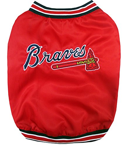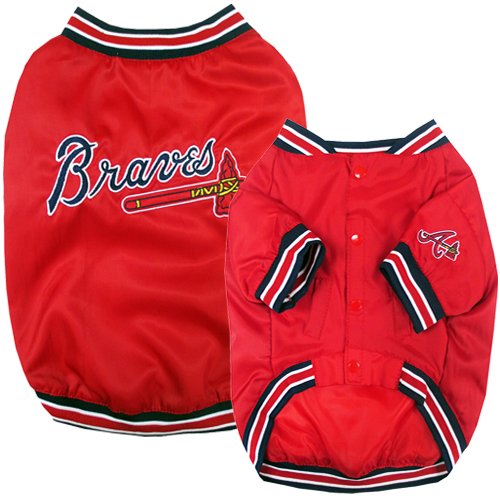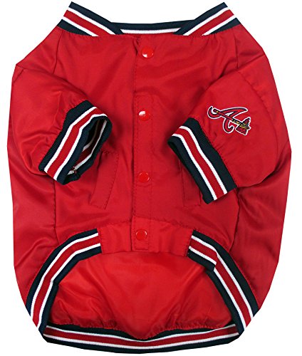 Keep your four-legged fan warm with his/her own dugout jacket! jacket is just like the one your favorite players wear! this dugout jacket is made of polyester twill with nylon lining & an elastic trim at the edges to ensure a comfortable fit! front has pocket trim on each side & 4 snaps over the Velcro closure. The back has the team logo embroidered to show off your team of spirit! machine wash cold, do not bleach, line dry, do not iron print. For sizing specifications please refer to the size chart.Feature