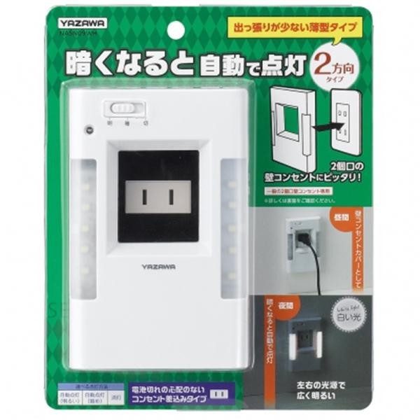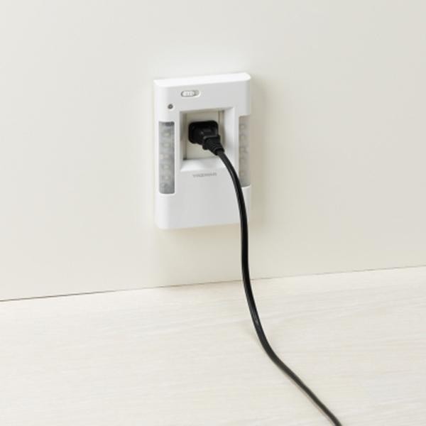 fk094igrjs暗くなると自動で点灯壁からの飛び出しが少ないスリム型 サイズ 約(W)80×(H)127×(D)30mm 個装サイズ:15×19×4cm 重量 約68g(本体のみ) 個装重量:105g 素材・材質 ABS 仕様 ●点灯方式:明暗センサー ●光源:白色LED×10灯 ●色温度:6000K ●光源寿命:30000h ●使用電源:コンセント 製造国 中国 暗くなると自動で点灯 暗くなると自動で点灯壁からの飛び出しが少ないスリム型