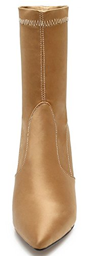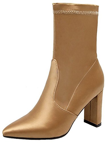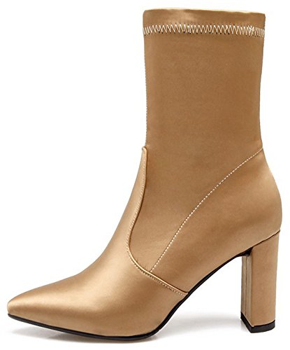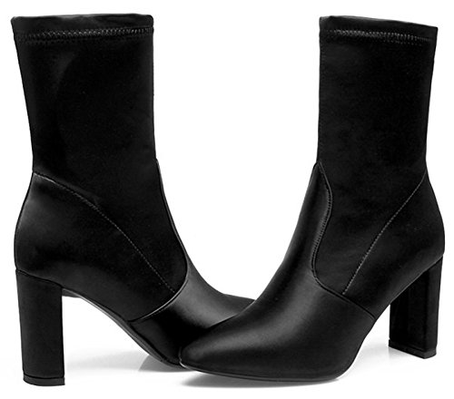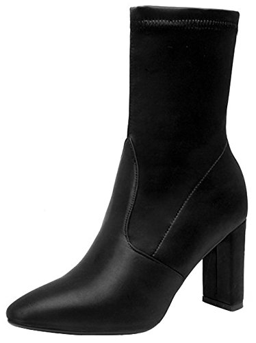 (Mofri)/Women's/Boots/DIRECT FROM USA/Mofri Women's Dressy Chunky High Heel Pointed Toe OL Work Shoes Pull On Skinny Mid Calf Boots