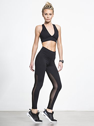 -. Feature : Mesh panels in back, from thigh to ankle / Double seams on waistband for extra hold. Supportive 3" waistband. / Supportive compression. Non-restrictive stretchy fit. / Quick-drying silky, mid-weight fabric. / Triangle gusset for comfort. 27" inseam.