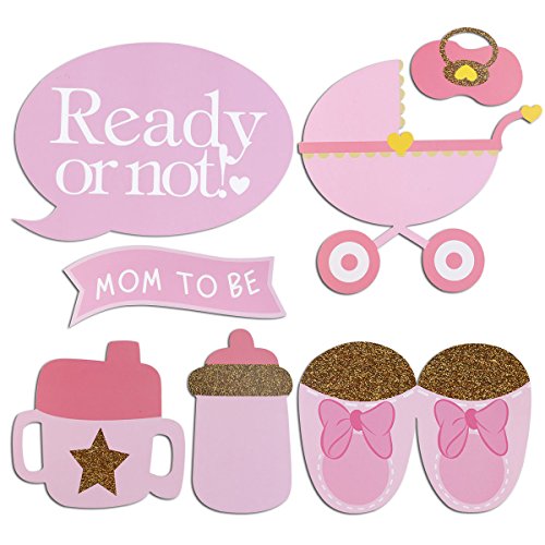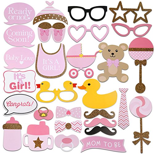 Tinksky 29pcs Baby Shower Photo Props, Baby Bottle Masks Pink Photobooth Props Newborn Girl Gift Party Decorations