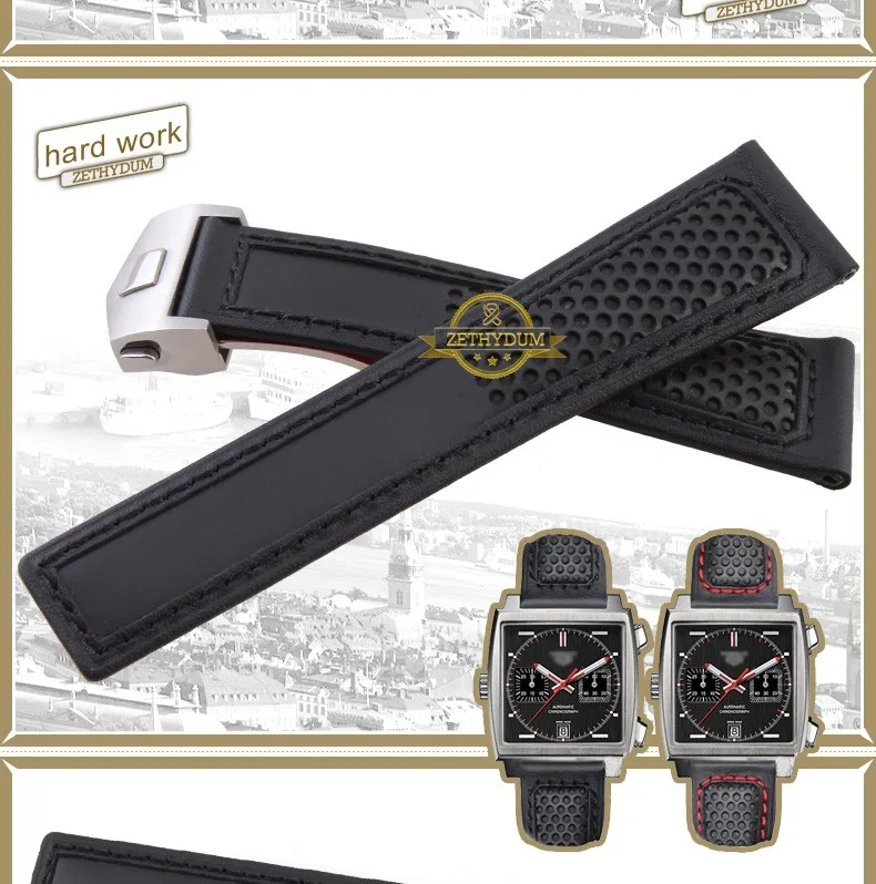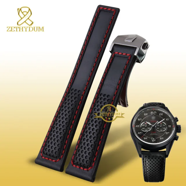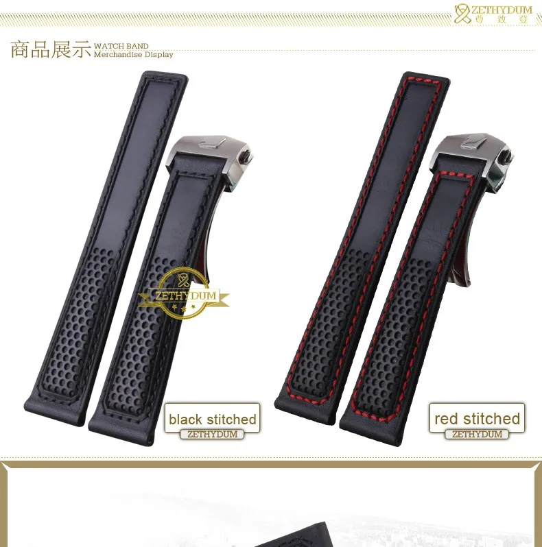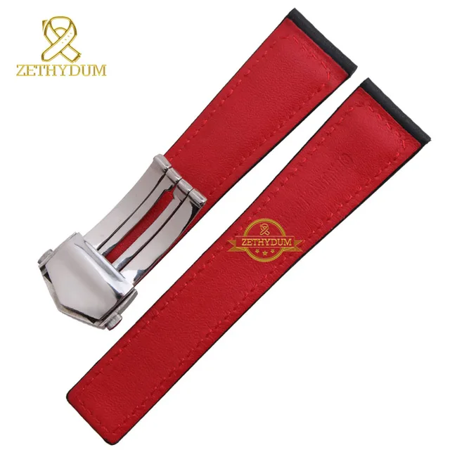 정품 가죽 팔찌 시계 스트랩 손목 손목 밴드 레드 스티치 22 미리메터 액세서리 시계 벨트 배 버클