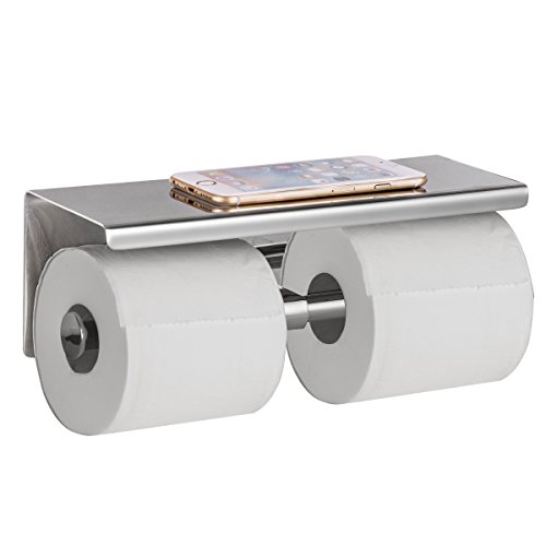Dual Toilet Paper Holder Stainless Steel Storage Bathroom Kitchen Paper Towel Dispenser Tissue Roll Hanger Wall Mount