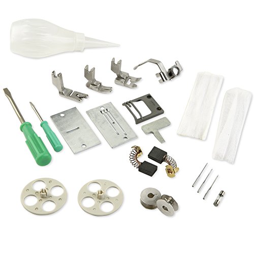 -. Feature : Sewing machine for light- to medium-duty zig-zag sewing / Sewquiet 3000 DC Servomotor; runs at speeds up to 2500 rpm / Link-type feeding mechanism; reverse feed; built-in bobbin winder; belt guard / Accessory kit includes extra feet, 2 bobbins, 2 screwdrivers, and embroidery plate / Measures approximately 48 by 20 by 39 inches; 1-year limited warranty