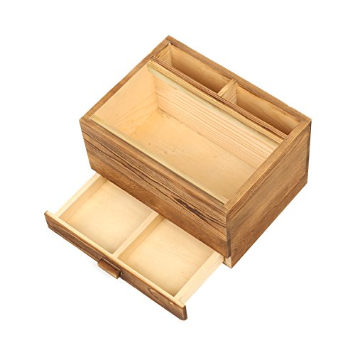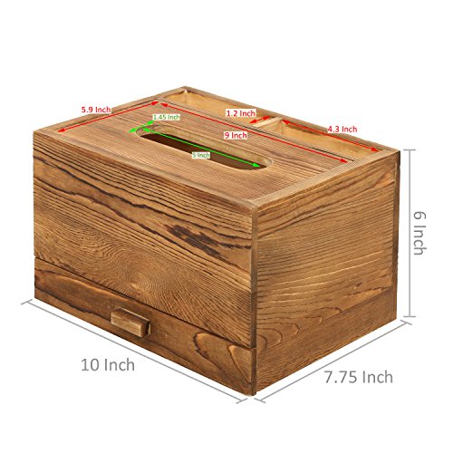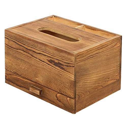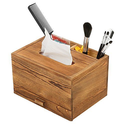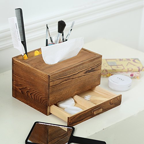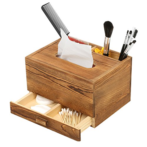 Rectangular Wooden Tissue Box Cover Holder and Vanity Makeup Organizer with Storage Drawer, Brown