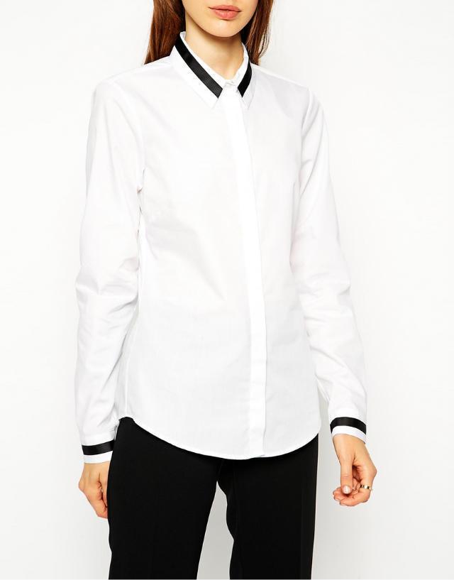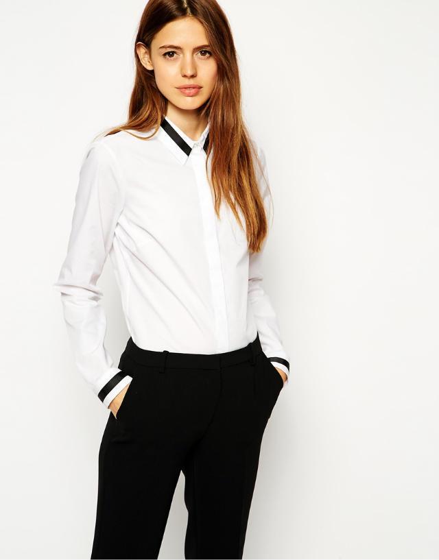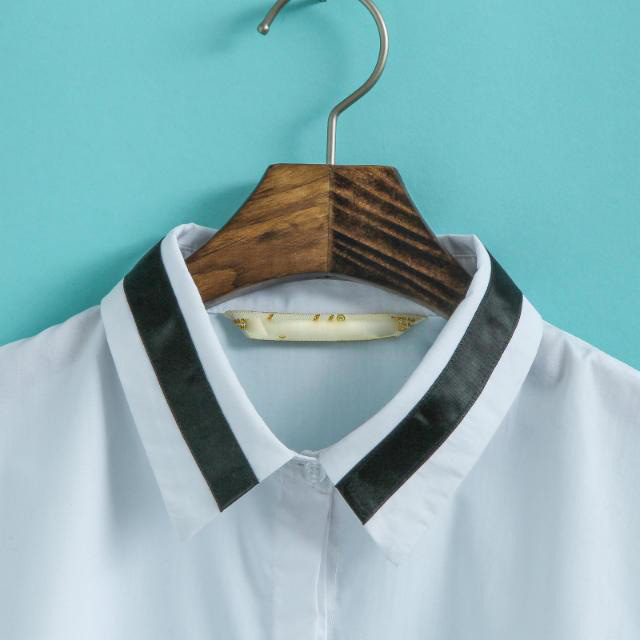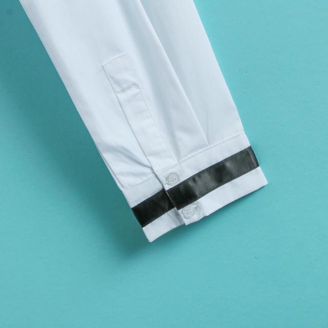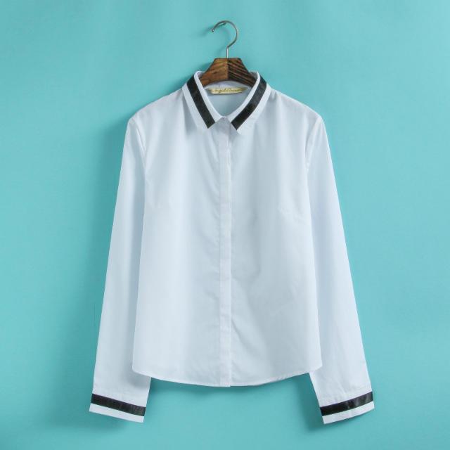 New Arrive Women All match White and Black Contrast Color Turn down Collar Long Sleeve Slim Blouse High Quality in Stock