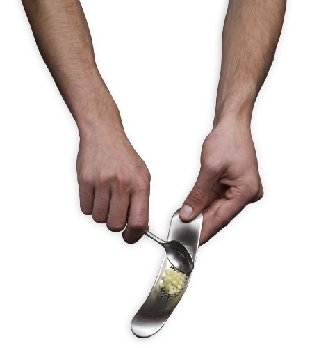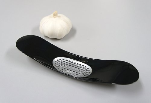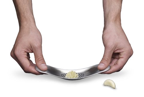 Crushes garlic cloves quickly and easily by forcing the pieces up through its mesh holes