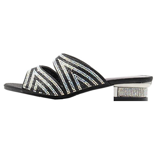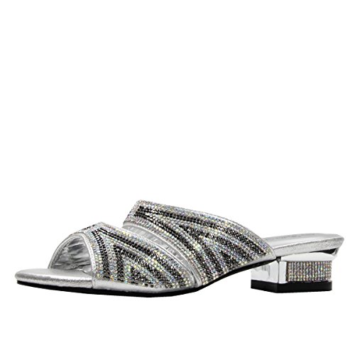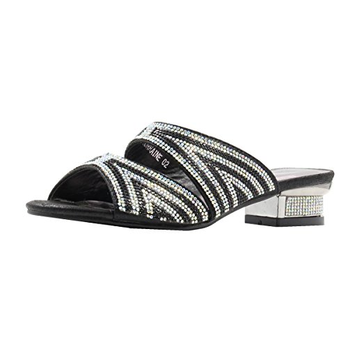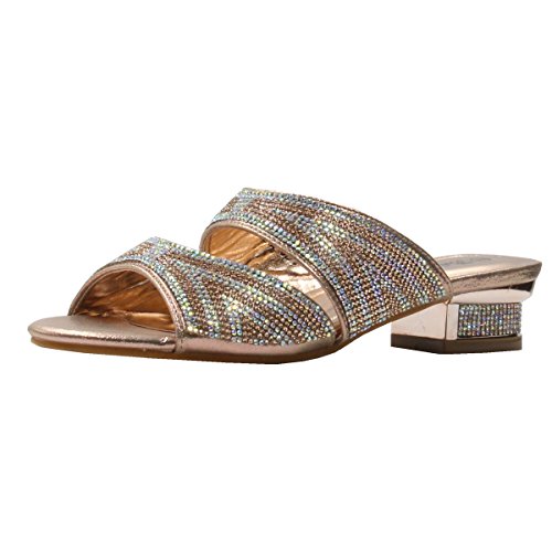 Product Description Women's rhinestone low heels slipper sandals, elegant classic style. It will look gorgeous with any type of dresses. They even look great with your favorite pair of capri legging or skinny jeans. 0