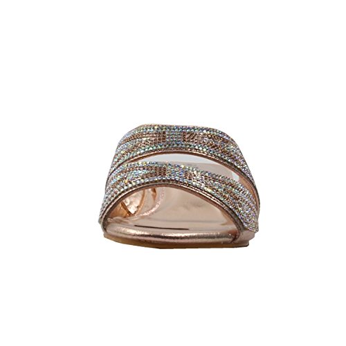 (Stylish Comfort)/Women's/Sandals/DIRECT FROM USA/Stylish Comfort Women's Rhinestone Glitter Two-Piece Upper Open Toe Low Heeled Sandals with M...