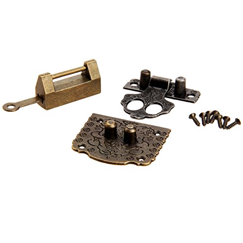 Dophee Antique Cabinet Cupboard Decorative Vintage Case Box Latch Hasp & Lock & Screws