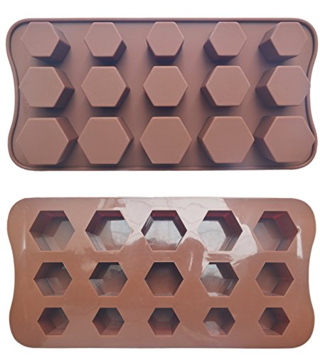 ADS Silicone Pastry Chocolate Cake Mold Baking Pan - Hexagon - 15 Cavities - 3 Sizes