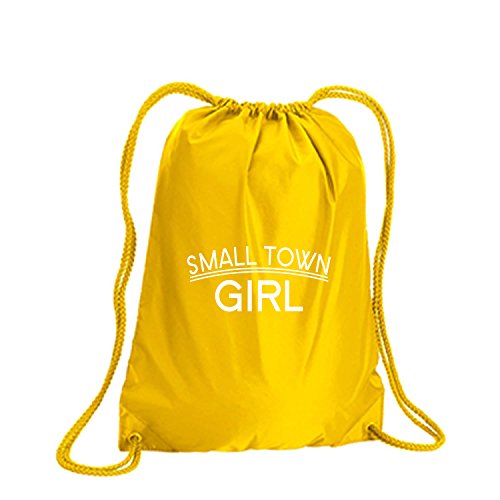 Product Description This durable and stylish nylon tote features "Small Town Girl" on a cinch pack tote with white ink. Bag comes in small and large sizes and is made of a durable 210 Denier nylon and has color-matched draw cords. Printed in the USA on an imported bag. 0