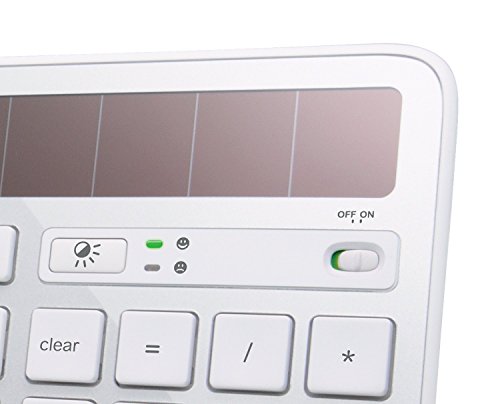 -. Feature : This Certified Refurbished product is tested and certified by the manufacturer or by a third-party refurbisher to look and work like new, with limited to no signs of wear. The refurbishing process includes functionality testing, inspection, reconditioning and repackaging. The product ships with relevant accessories, a minimum 90-day supplier warranty, and may arrive in a generic white or brown box. / Solar-powered keyboard: No battery hassles-any light source keeps your keyboard charged for at least three months in total darkness / Only 1/3-inch thick: Ultra-thin design adds sleek style to your workspace / Familiar Mac layout: All the keys you're used to, plus a Launchpad hot key, are exactly where you expect them / Feel-good typing: Logitech-only concave key cap design for faster, quieter, more comfortable typing. System Requirements - Mac OS X 10.5 or later,USB port,Light source from sunlight and/or indoor lighting