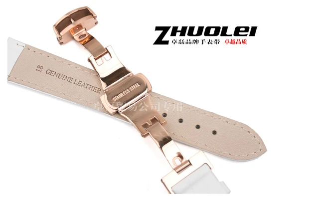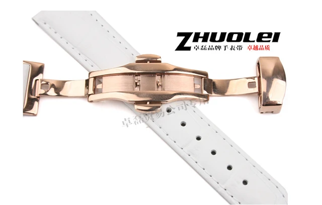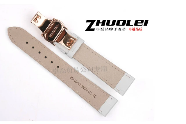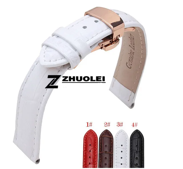 | [해외] 16 미리메터 18 미리메터 20 미리메터 새로운 높은 품질의 손목 시계 화이트 정품 가죽 스트랩 스테인레스 스틸 나비 버클 손목 시계 밴드 |