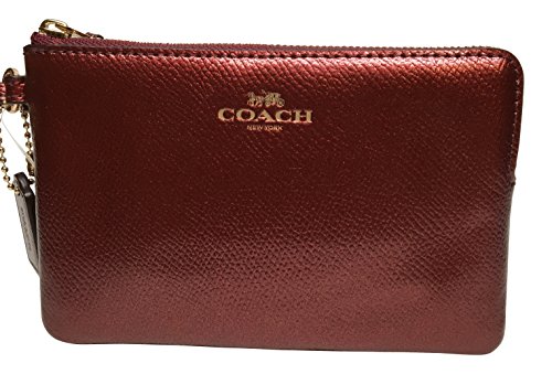 -. Title : Coach Crossgrain Corner Zip Wristlet Metallic Cherry 54626