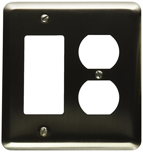 Amerelle 2RDPW Devon 1 Rocker 1 Duplex Wall Plate, Brush Nickel Steel
