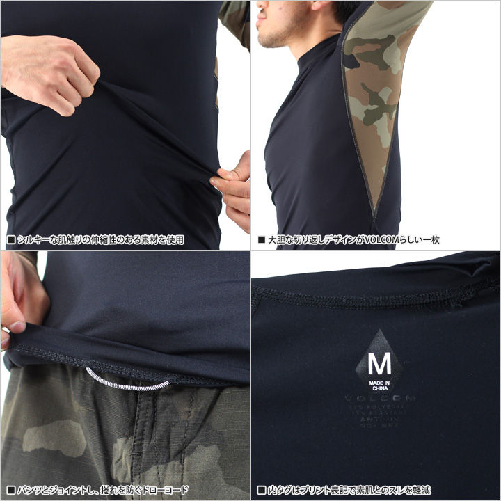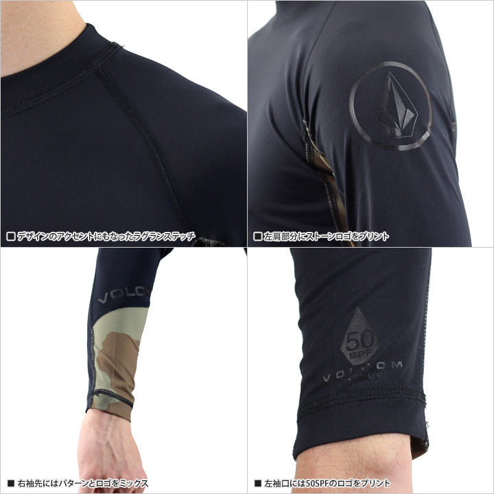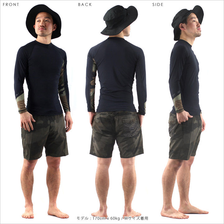 大胆に袖裏に切り替えされた柄のアクセントが斬新なラッシュガードです。