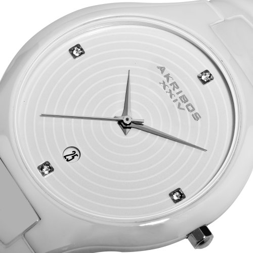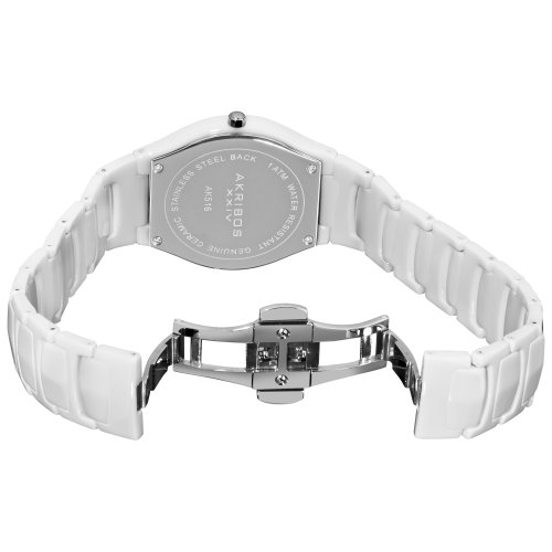 -. Title : Akribos XXIV Women's AK516WT Slim Ceramic Watch with White Link Bracelet