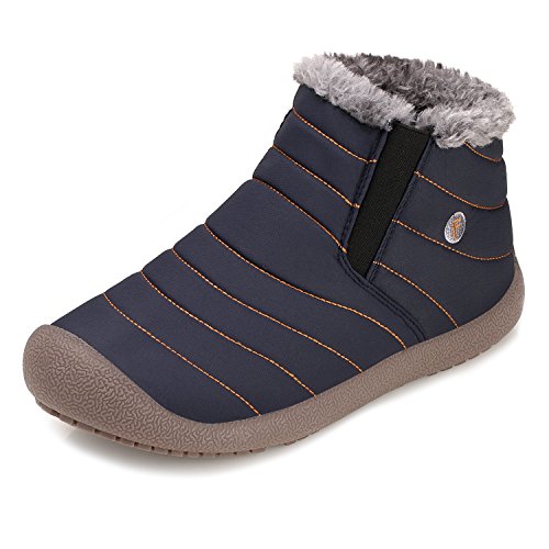 -. Feature : Waterproof Design - offer optimum waterproof protection provided by the best-in-class water-resistant vamp and sealant-equipped rubber sole , Specially designed toe cap for added protection, keeps your toes safe from the unexpected. / Thick Breathable Fully Fur Lining - Fully fur lined from top to insole. Fully fur lining and lightweight sole keeps your feet warm, perfect for playing in the snowfield, wet surfaces. / Skid-resistant Design - crafted with durable and rigid rubber sole of a non-slip solid grip ,they offer you a stable support when you are striding on any humid surfaces without the fear of dropping off. / Unique Hand Stitching - exquisite style is fully delivered by the trendy stripes on the upper and embroidered lettering. / Flexible Usage - Perfect to wear this waterproof lightweight slip-on booties in winter to run errands outdoor, like take the trash to the dump, get the mail and groceries, walk the dog, playing on the snow, hiking.