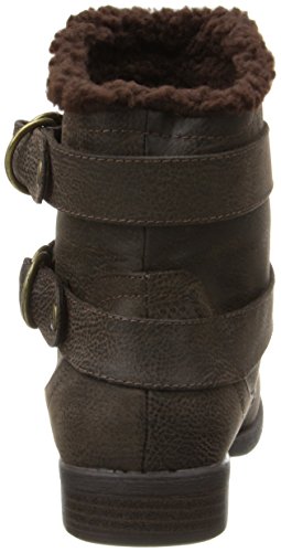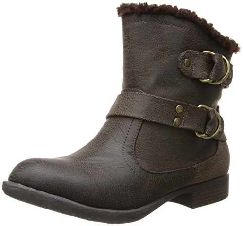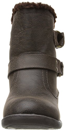 Soft fabric upper with strap and buckle detail. Faux shearling collar and lining. Cushioned fabric footbed. Man-made sole. Imported.