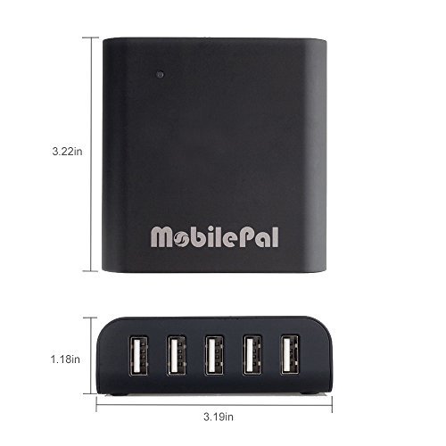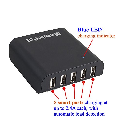 5-Port USB Desktop Charger for Smartphones and Tablets - MobilePal - Supports iPhone, iPad, Android Devices [Fast 2.4A Charging / Smart Charging]
