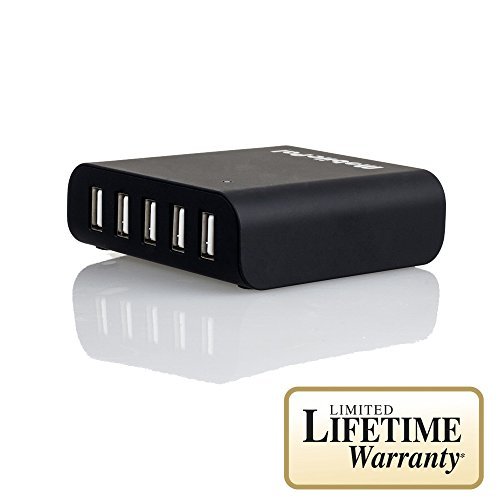 5 Smart Ports and Universal: Charges 5 smartphones, tablets, e-readers, MP3 players, Bluetooth headset, smartwatch, Google Glass, etc. simultaneously at up to 2.4A with automatic load detection, saving your time. Compatible with virtually all portable USB devices.