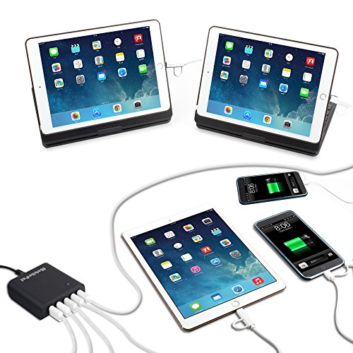 The five USB ports allow you to charge 5 smartphones, tablets, e-readers, Bluetooth headsets, smartwatches, Google glasses etc. simultaneously at full speed, saving your time. The SmartPort technology ensures compatibility with virtually all smartphones or tablets, including Apple iPhone / iPad / iPod, Samsung Galaxy, Samsung Note, Google Nexus 5 / 6 / 7 / 9, HTC One, etc.