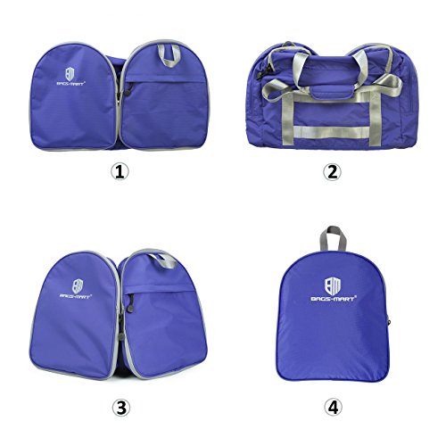 The bag consists of 1 zipper front pocket, 1 double zipper main compartment, 2 side zipper pockets and 2 straps on the back to attach to trolley case. In the main compartment, there is 1 zipper pocket on the back. Convenient for you to store in suitcase, luggage; Unfold to use as a duffel.