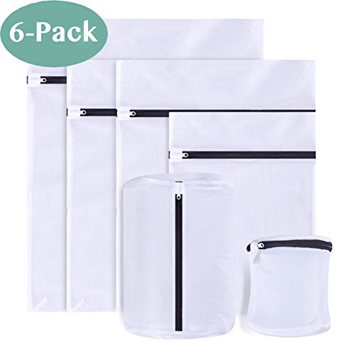 Laundry Wash Bag, Unimi Reusable Memory Cotton Laundry Delicates Mesh Bags Set with Zips for Washing Machine Dryer Bra Lingerie Socks Baby Clothes Underwear - Set of 6