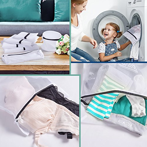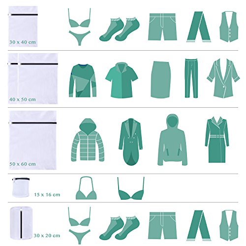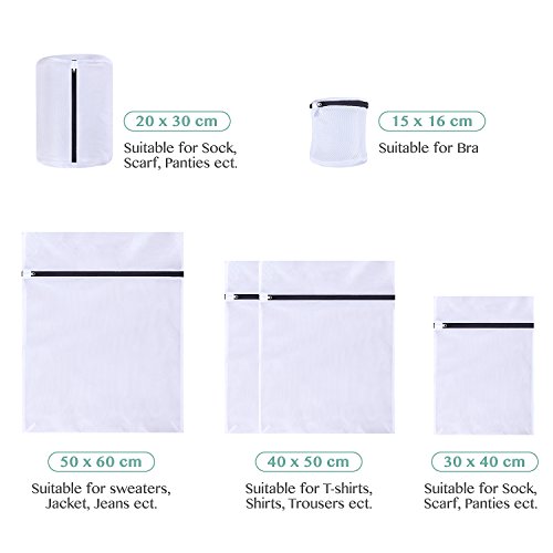 Multiple Size Laundry Bag: 1 Pack Large(50*60cm) 2 Pack Medium Mesh Bag (40*50cm); 1 Pack Medium Laundry Bag (20*30cm); 2 Pack Cylindrical Bag -- 1 Pack for Bras;1Pack for Shoe