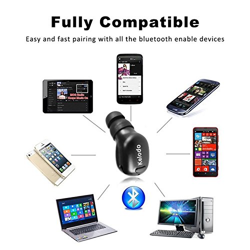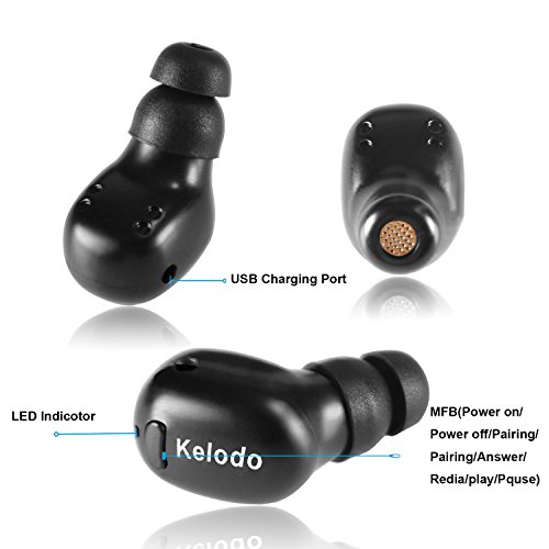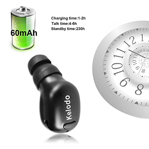 KELODO Bluetooth Earphone,Mini in Ear Wireless Earbud V4.1 Headset with 5.5 Hour Playtime,Driver Earpiece with Mic for iPhone Samsung Galaxy LG Motolora Smartphones - Black