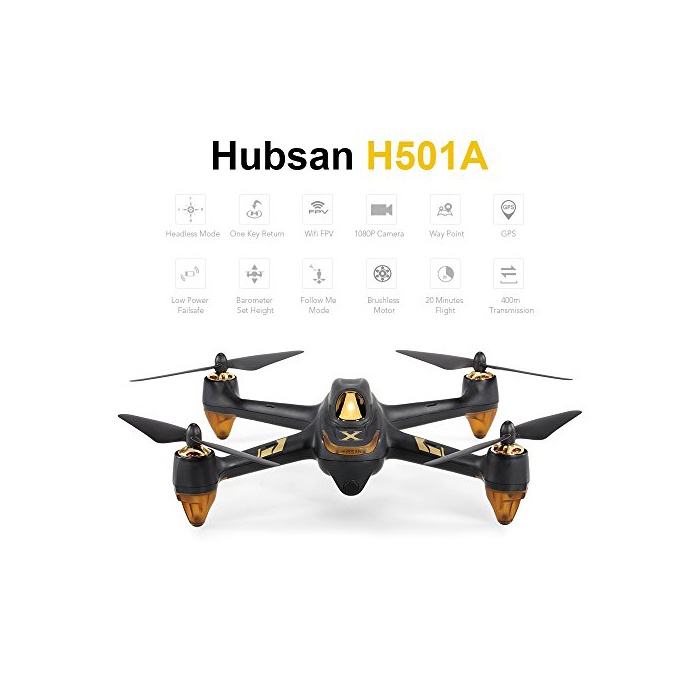 Hubsan H501A는 혁신 적인 Wifi FPV쿼드《고푸레타》,Wifi FPV,헤드 레스 모드,저 전압 fail safe,원 키 이륙/착륙,포인트 오브 더 이어,비행,좌때/우회전,웨이 포인트,WiFi콘트롤,LED라이트,사진/비디오 촬영,내장GPS 등의 기능.