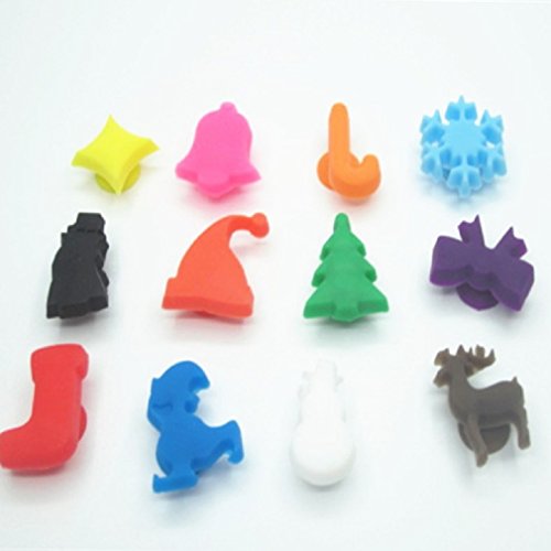 -. Title : 12 Pcs Christmas Silicone Suction Cup Wine Glass Markers for Holidays/Christmas/New Year