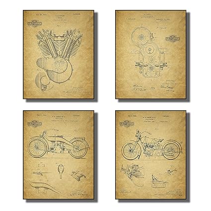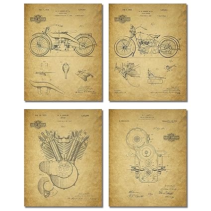 [Product Information]- Impress any Harley Davidson biker with these vintage Harley patent wall art prints