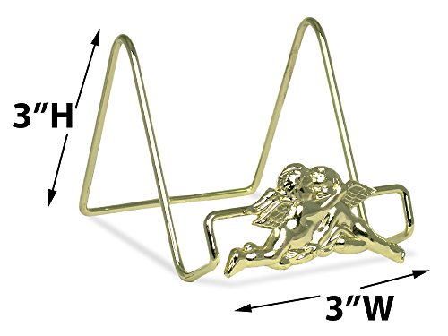 -. Feature : SET of 3 Solid Brass Wire Display easels. Cherub angels give it an antique vintage old fashioned look. / SIZE: 3"H / BRASS FINISH: Classy, elegant, sturdy and stable. High gloss and virtually non-tarnishable / DECORATIVE USES: Great tabletop easel for displaying small saucers, collectible plates, mini picture frames, decorative coasters, tiles, plates, plaques, awards small and some medium sized items like collectible books. Great way to display items for kitchen home decor. Display purposes for wedding ceremony, reception party and events. / COLOR: Gold