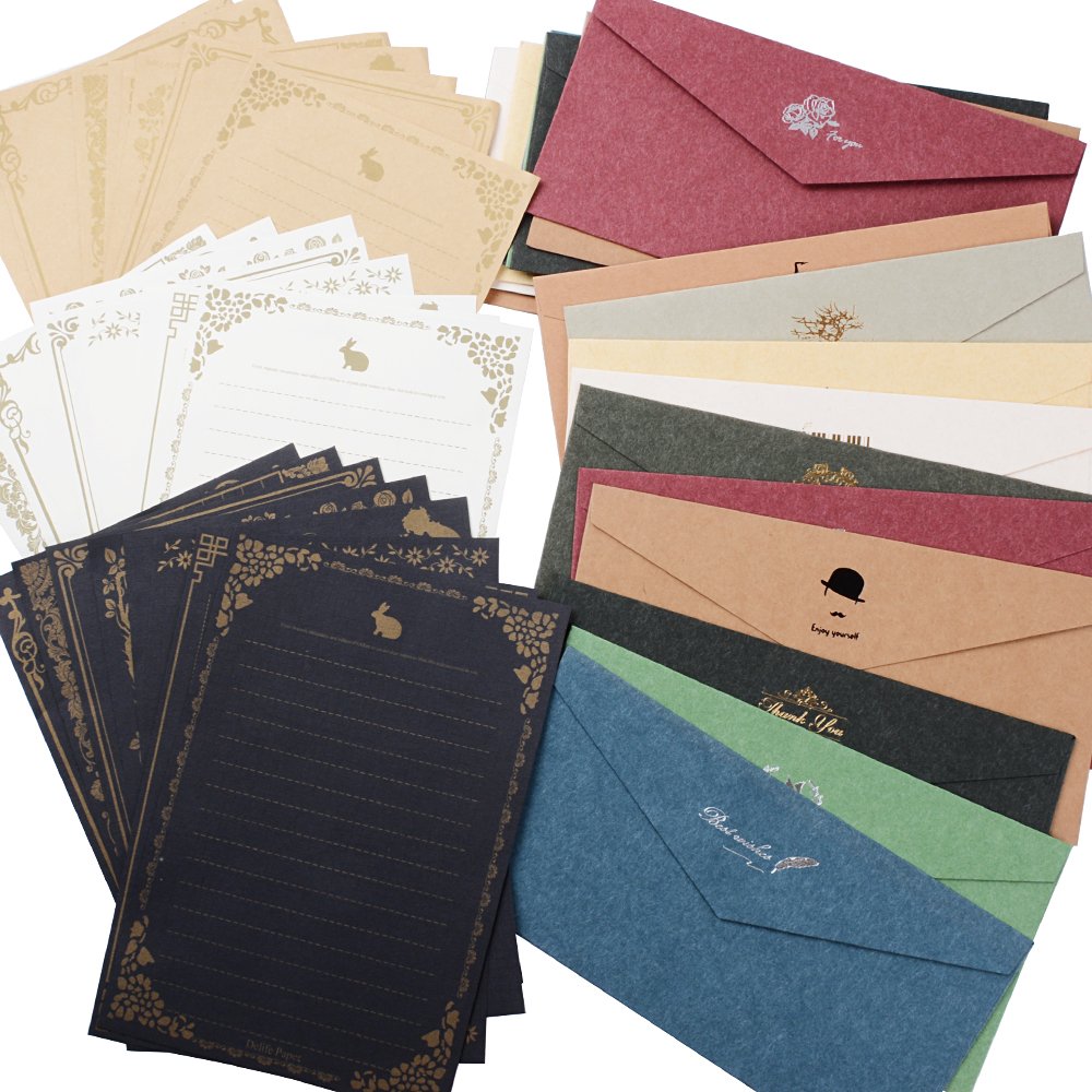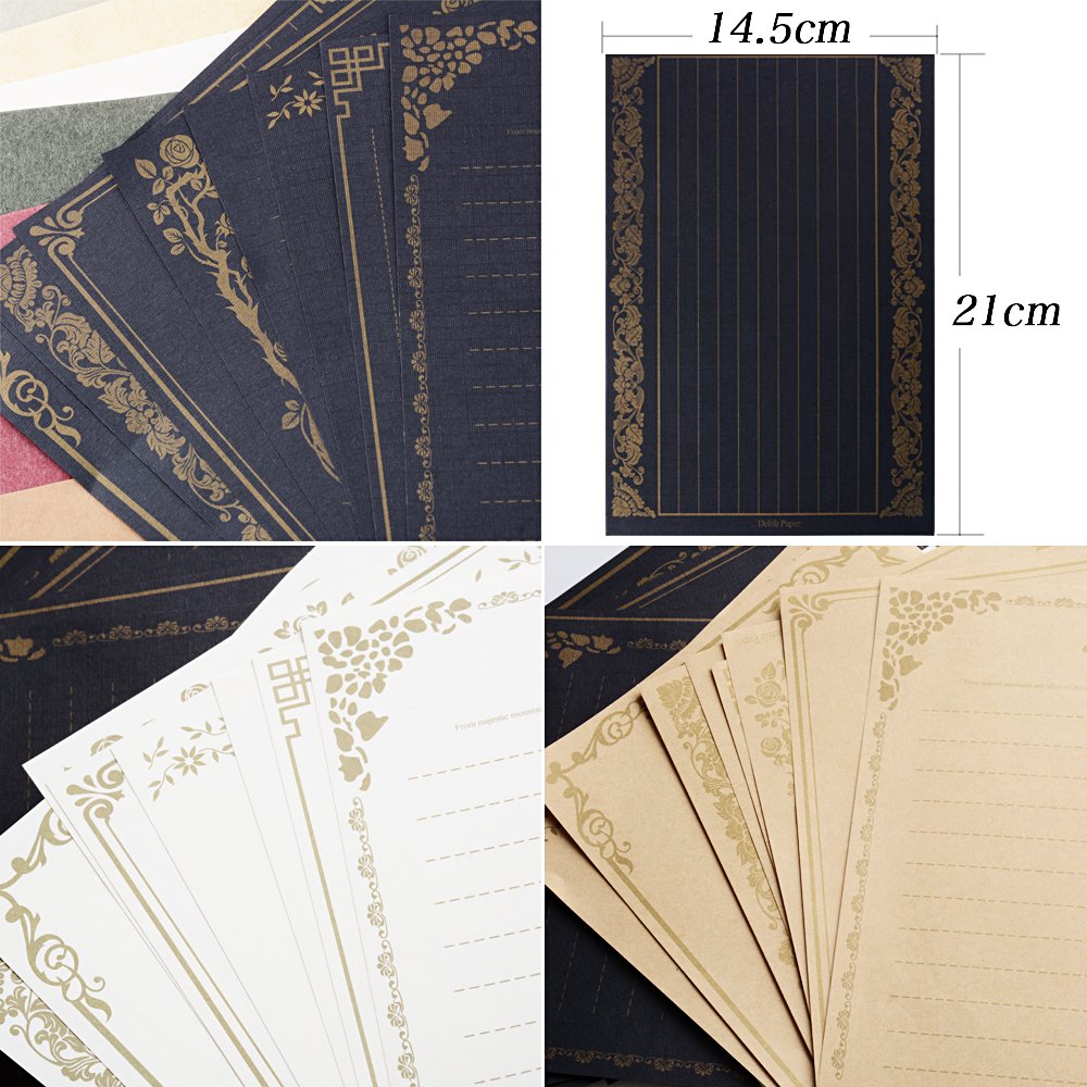 ♥高品質:紙表面は独特な質感があります。背中の金文字パターンは高級感であり、厚い紙は便箋をより良く保護することができます。