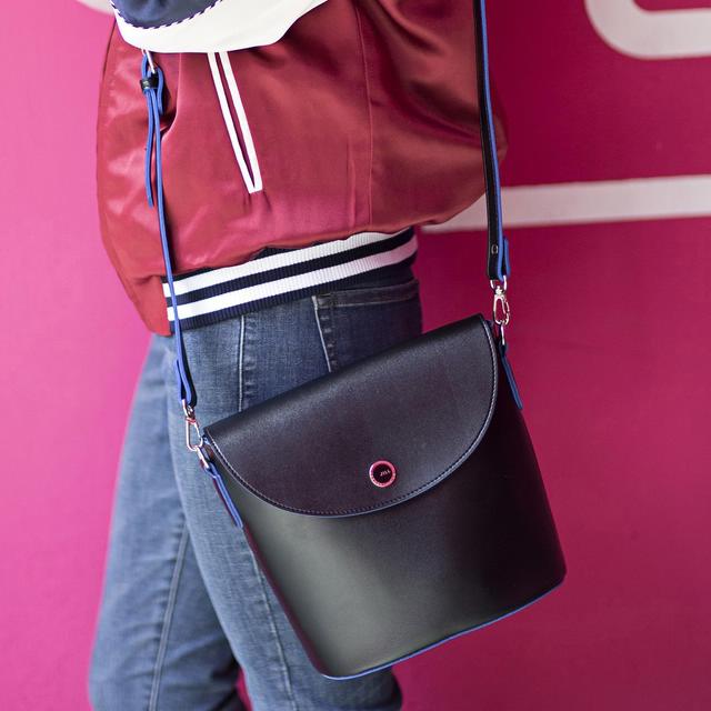 산뜻한 내부 컬러 배색이 포인트인 크로스 버킷백 입니다.