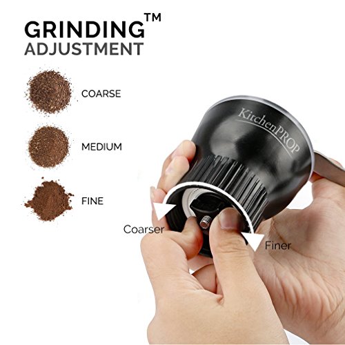 ★COMPACT & PORTABLE: Our Original Kitchen PROP manual coffee grinder is very compact in its dimensions and ideal for the quick coffee break. Whether you are traveling, hiking, camping, backpacking on the read, on a road trip, with our quick & easy mini coffee mill you can enjoy freshly grinded coffee anywhere!