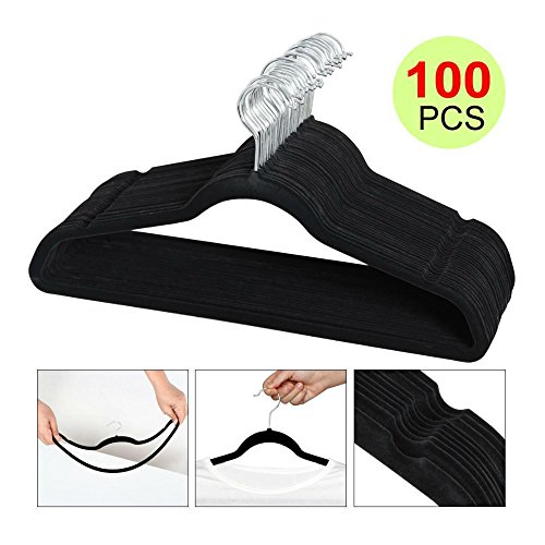 -. Feature : Non-slip hanger with flocked surface for adult clothing 100-pcs pack, ample for retail, commercial or home use / Standard size, a wrinkle-free choice for coats, shirts, jackets, trousers, dresses skirts, sweaters, and those of delicates materials / Great to organize and display clothes while maintaining their shapes High strength plastic construction of premium curves, light-weighted yet durable / Tough zamak hook swivels 360 degree, hangs effortlessly on doors, bars, rods etc. Gentle flocked surface friendly to garments with notched shoulders to keep looped clothing in place / An integrated accessory holder for scarves, ties, belts and others Color will not fade when hanging wet clothes