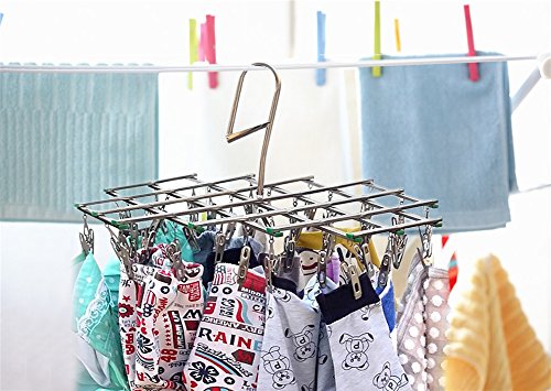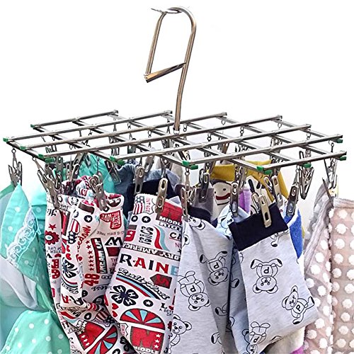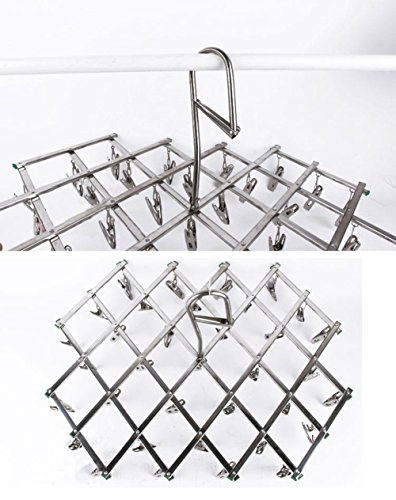 -. Title : LEF Stainless Steel Foldable Drying Rack Swivel Clothes Hook Hanger with 35 Clips - BONUS 15 Clips for Drying Underwear Bra Sock Towel Gloves Diapers