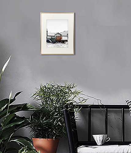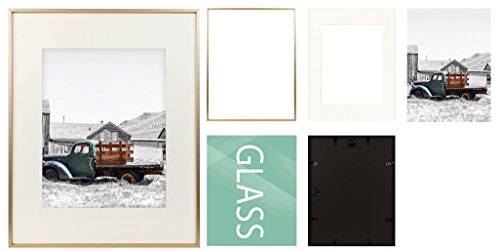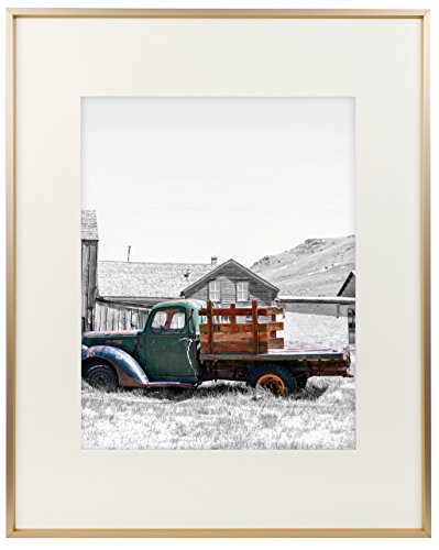 Golden State Art,16x20 Classic Satin Aluminum Landscape Or Portrait Photo Frame With Ivort Color Mat For 11x14 Photo & Real Glass (Gold)