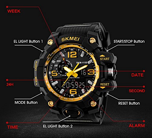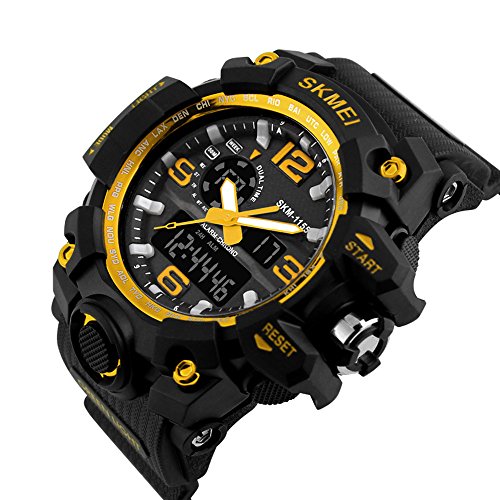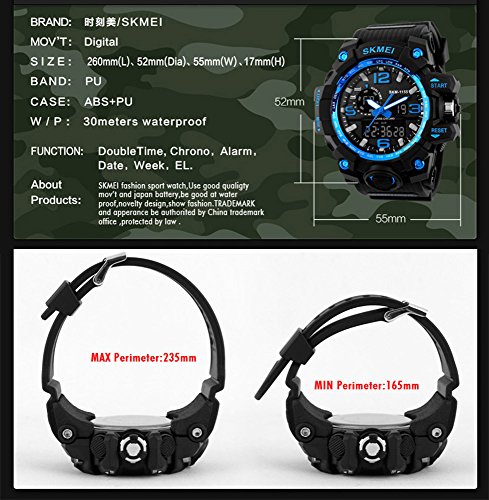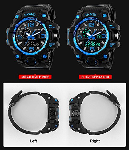 DUAL DIAL TWO TIMEZONE: analog and digital dual dial support two different timezone. Shock resistant, stop watch, military 12H/24H time, and LED back light functions make it perfect for all kind of sport and daily use.