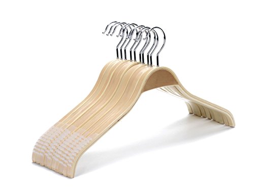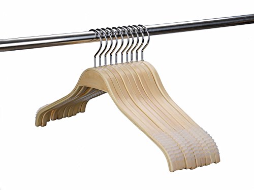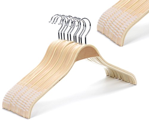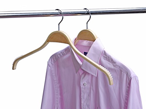 -. Title : Amber Home Durable Wood Clothes Hanger with Soft Non-slip Stripes for Coats and Shirts Natural Finish 10 Pack