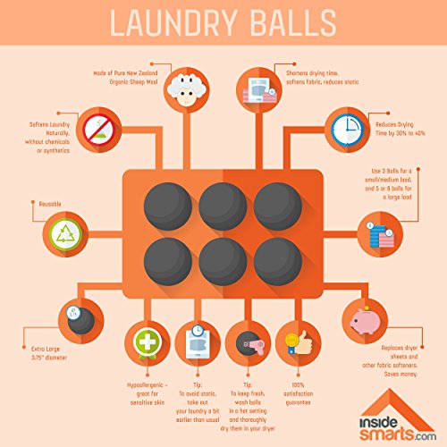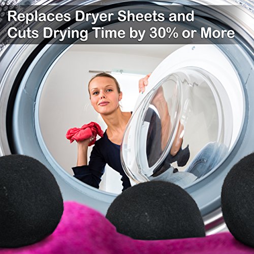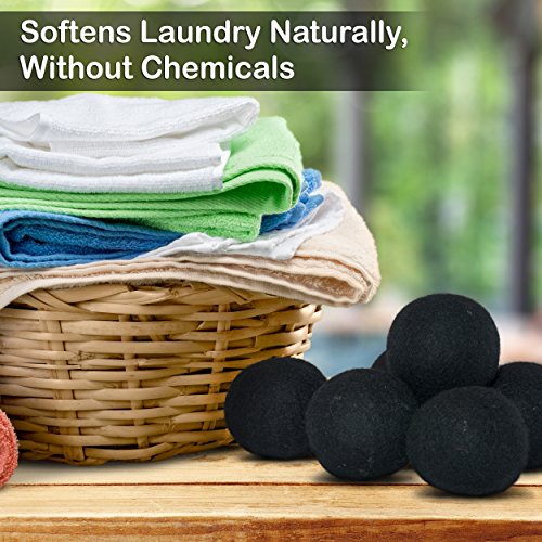Wool Dryer Balls, Set of 6 Organic Laundry Balls for Dryer, Black, by InsideSmarts